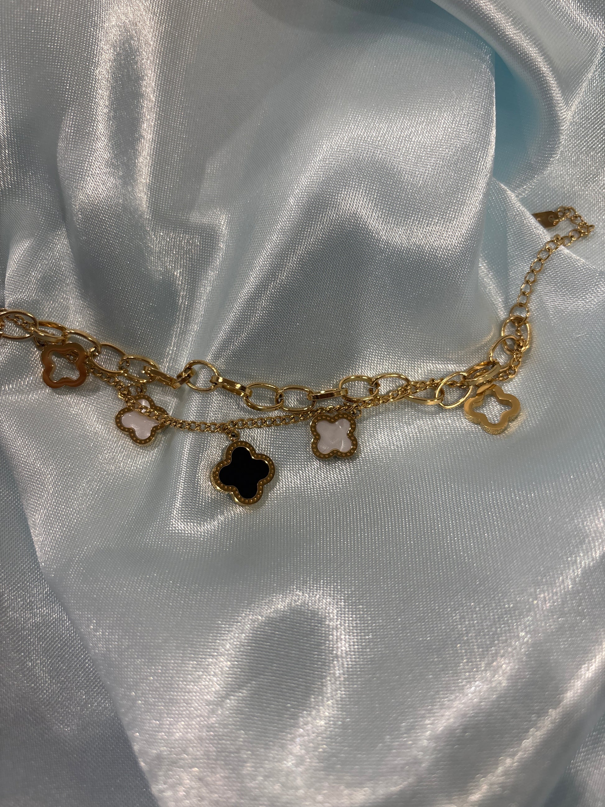 "Luck is always on your side with the Charmed Clovered bracelet! This modern and stylish accessory will charm your look and add a touch of cuteness to any outfit. Perfect for the demure fashionista (or anyone feeling lucky)!"