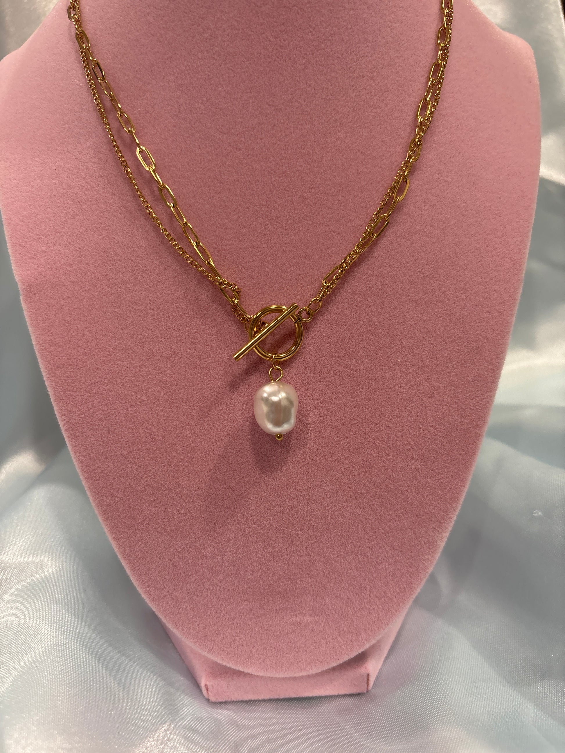 "Enhance your everyday look with Layered Obsession, featuring a beautiful pearl droplet. Elevate any outfit with a touch of elegance and sophistication. Perfect for any occasion."