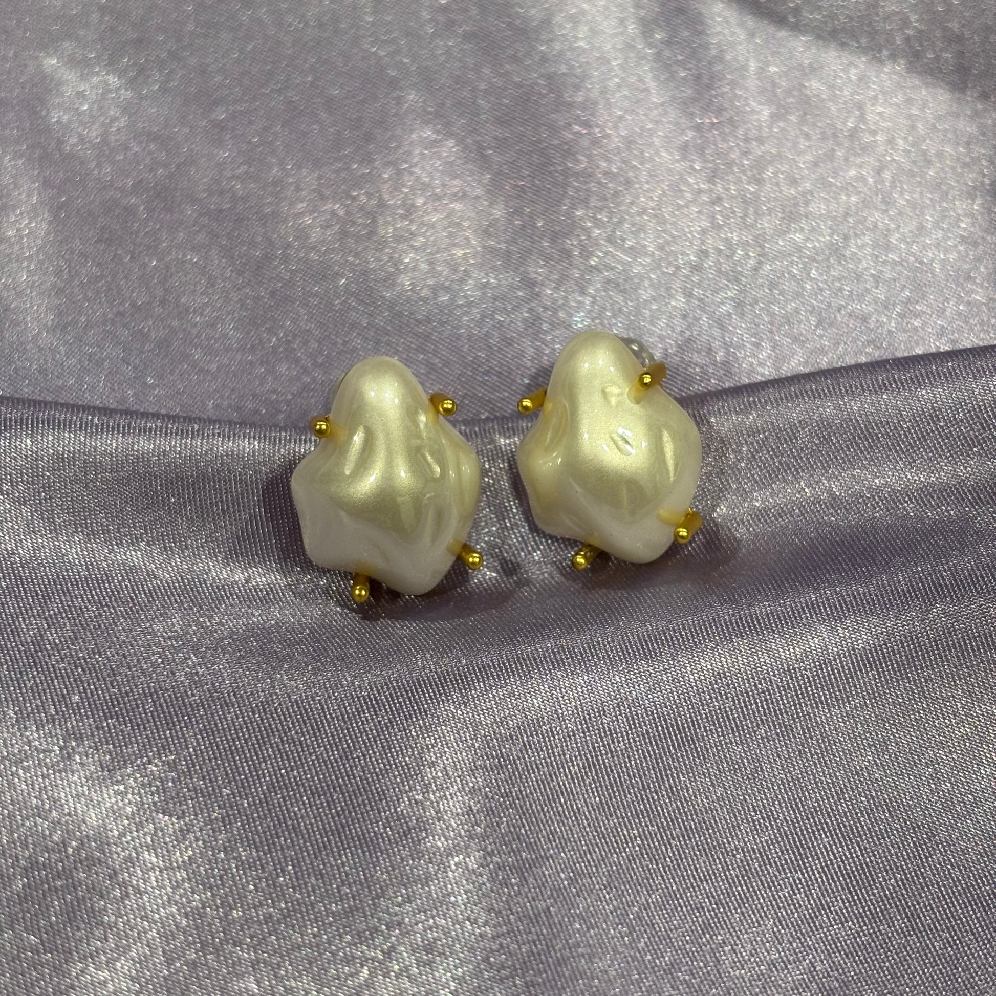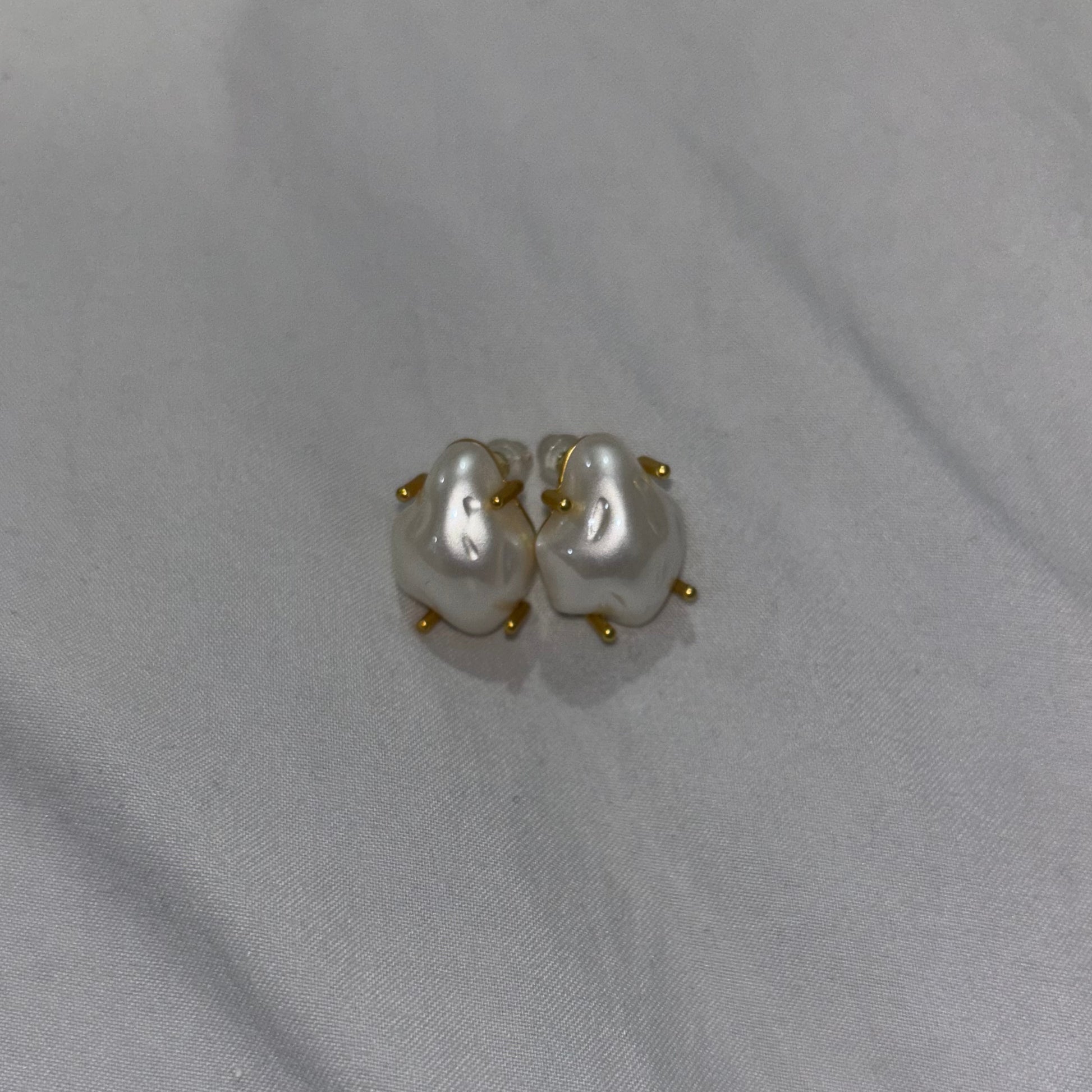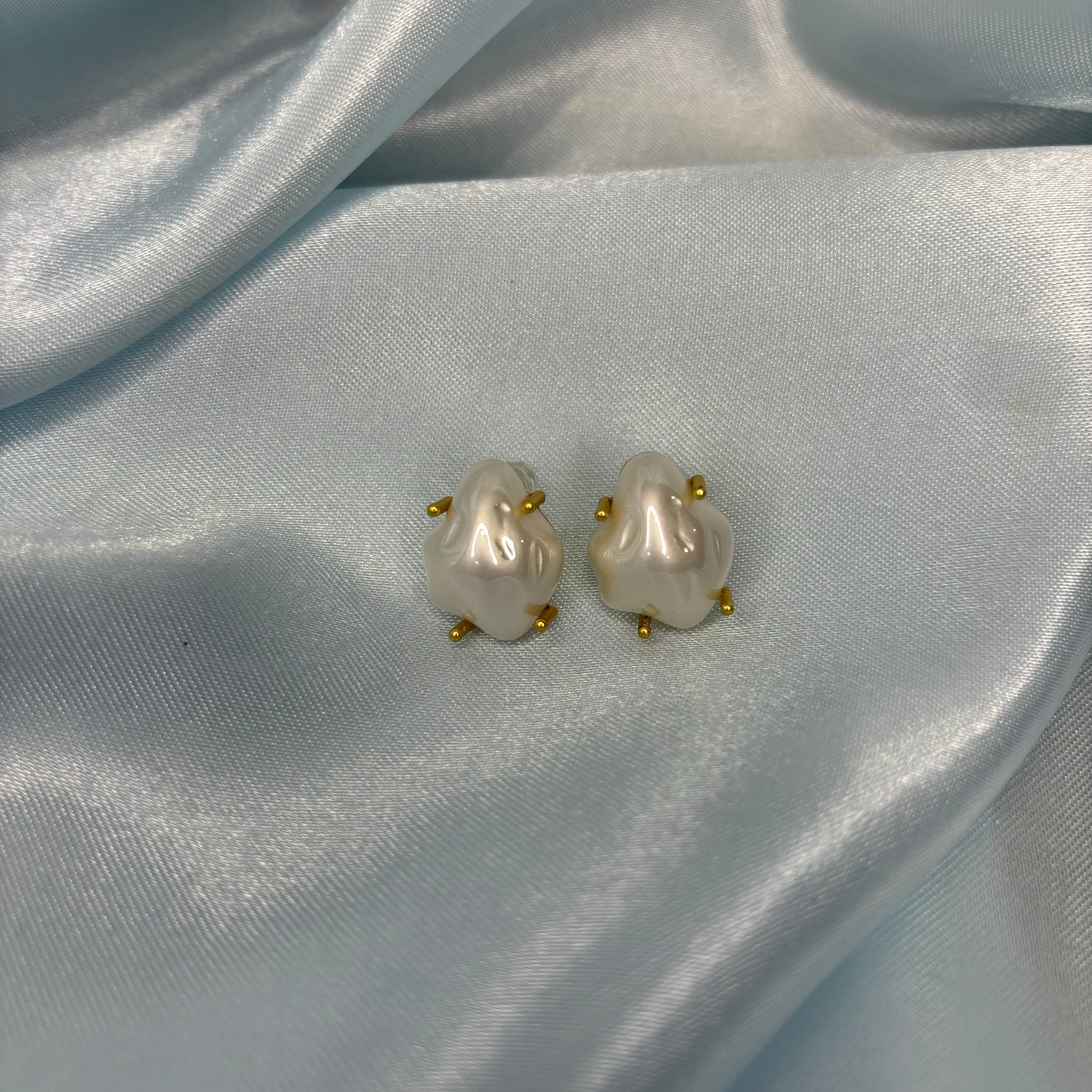 The Paradise ear studs feature irregularly shaped pearls that add a touch of uniqueness to any look. Made from high-quality pearls, these studs are a timeless addition to your jewelry collection.